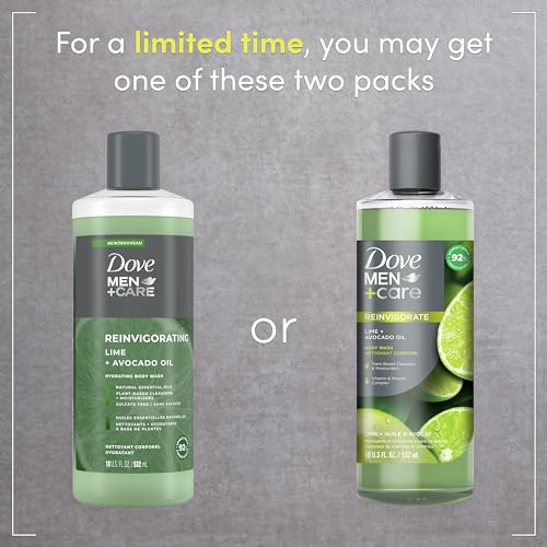 Specification: DOVE MEN + CARE Body 4 Count Wash Lime + Avocado Oil to Rebuild Skin in the Shower with Plant-Based Cleansers and Moisturizers 18 oz