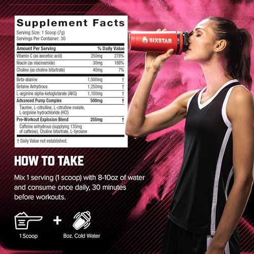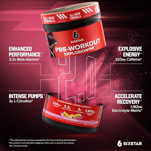 Six Star Pre-Workout Powder for Men & Women, Pink Lemonade (30 Servings) – Preworkout Explosion 2.0 Energy Powder Drink Mix with Beta-Alanine & Caffeine – Sports Nutrition Supplement Products